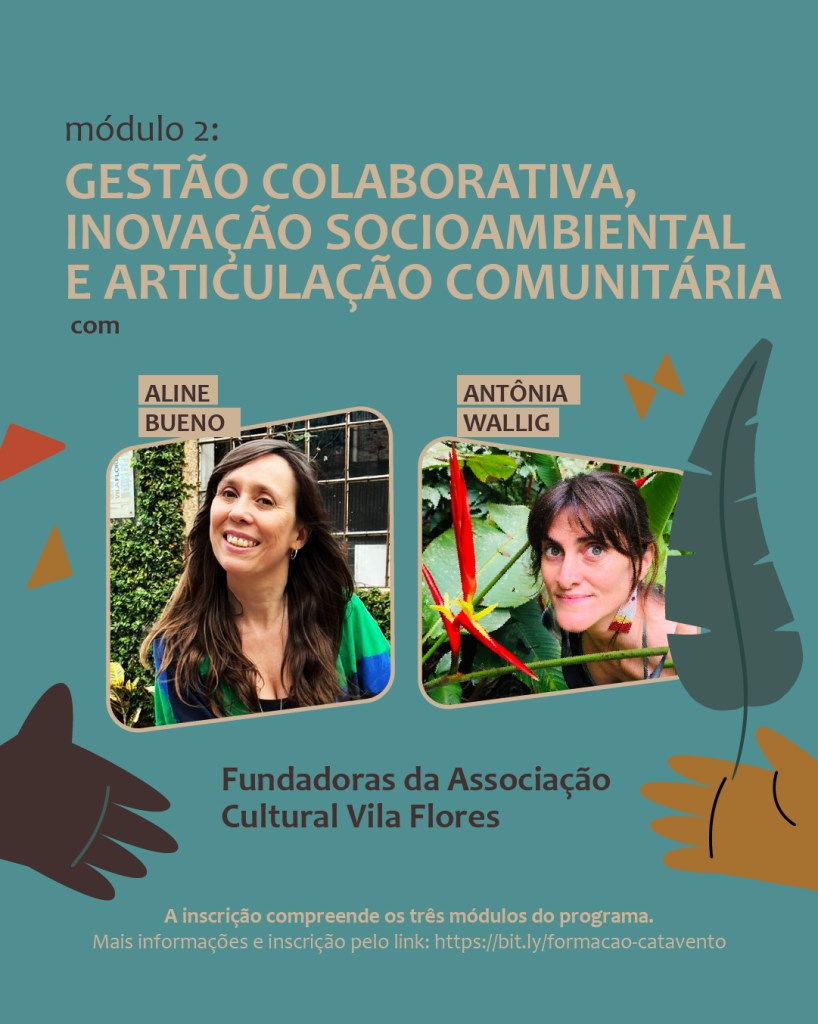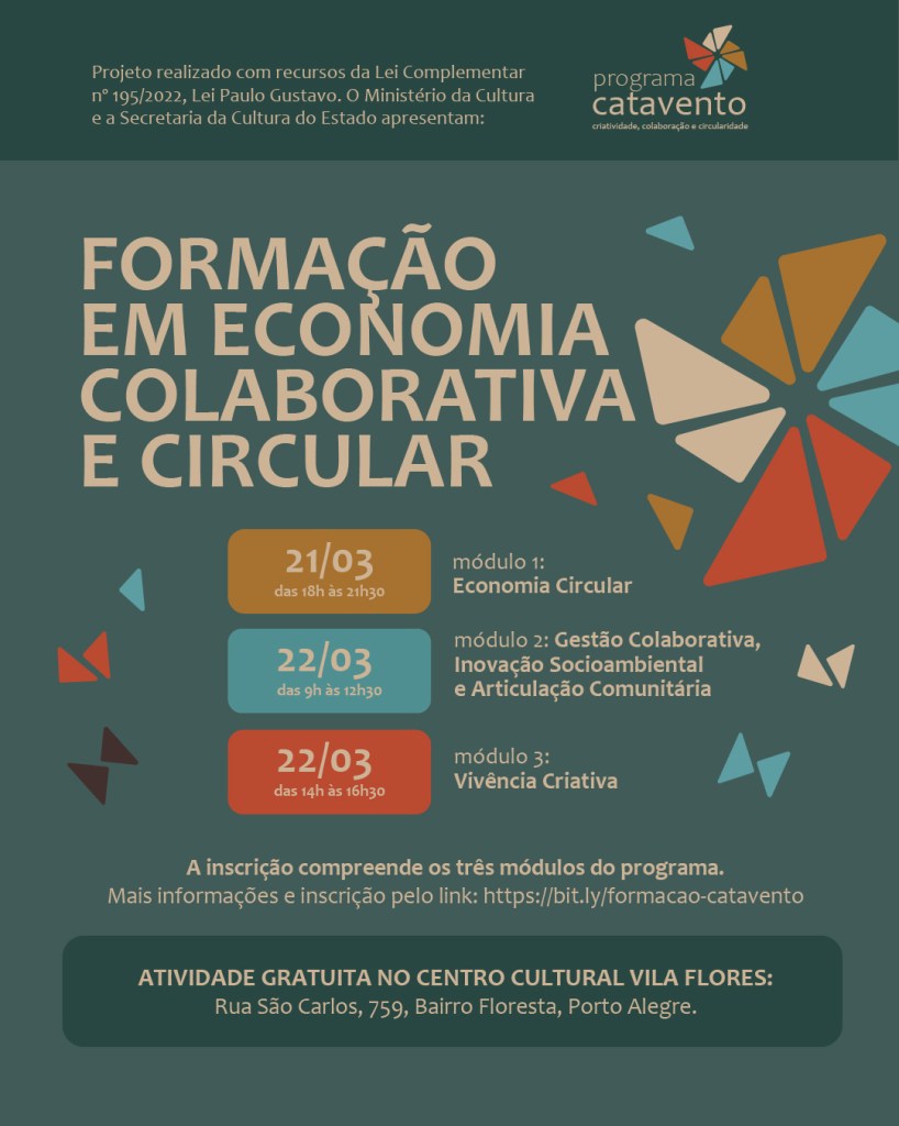Temos um convite especial para vocês! Vamos participar de duas atividades do Programa Catavento, promovido pela Associação Cultural Vila Flores e que é voltado à temas como Economia Circular, criatividade e colaboração.